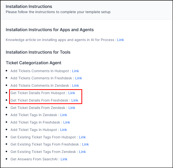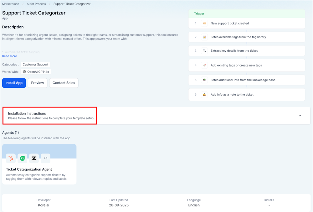 Configure installed tools: After installation, return to the Marketplace and select the app you installed. On the app’s description page, locate the Installation Instructions. Click the Link next to each installed tool to view the detailed configuration procedure.