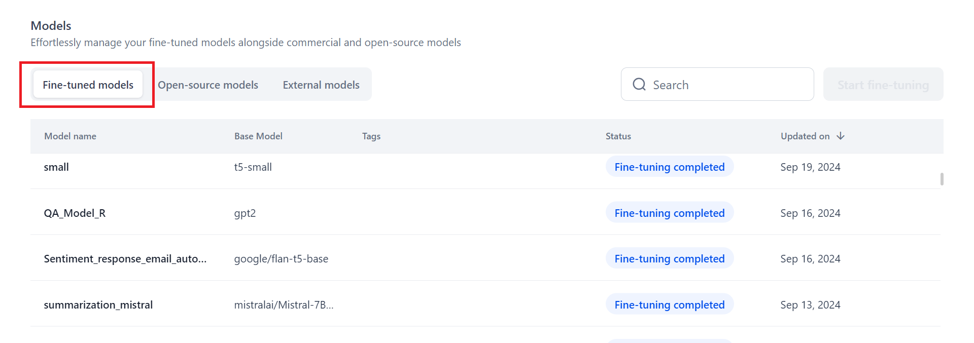 Once the fine-tuning process is completed, you can deploy your fine-tuned model.