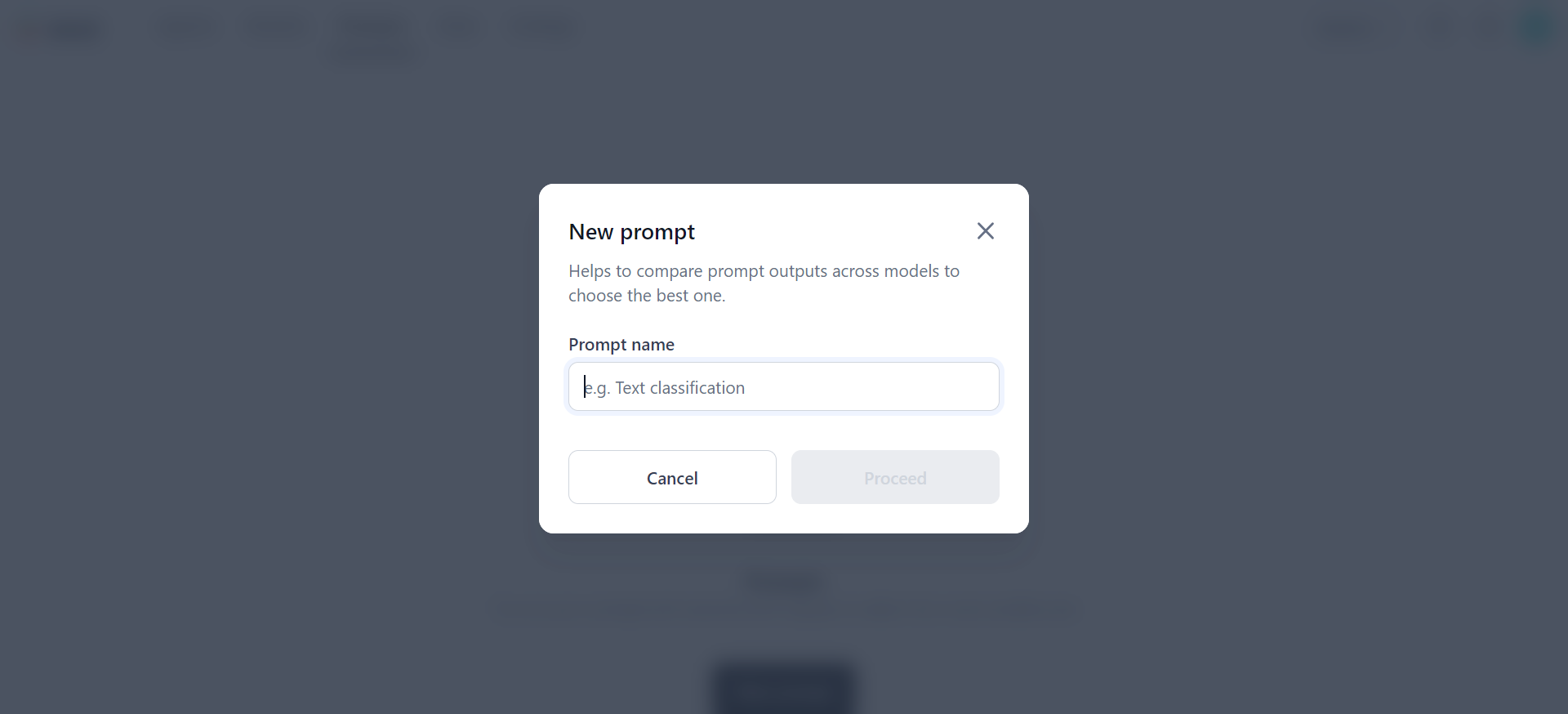 On the New prompt dialog, enter a name for your prompt, and click Proceed. The Prompt landing page is displayed.