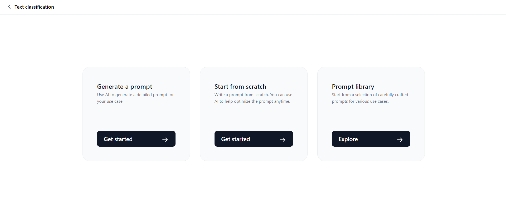 On the Prompts landing page, choose one of the three options to start your prompt creation journey: