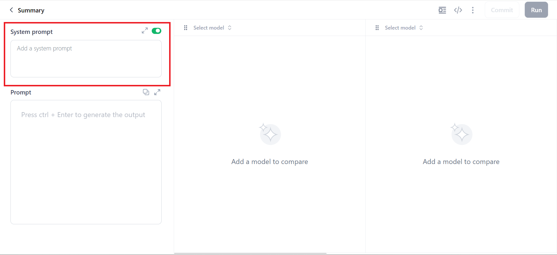 The System prompt field helps you assign a role to the model. System prompts are optional. You can use the toggle to enable or disable it as needed.