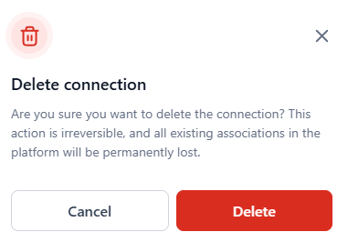 This action is irreversible and will remove all associations of the connection from the AI for Process.