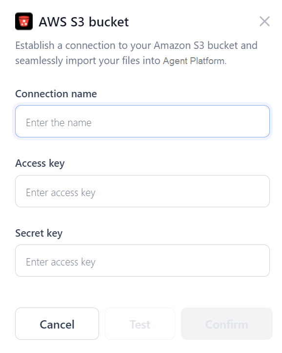 Click Add connection. The AWS S3 bucket dialog is displayed.