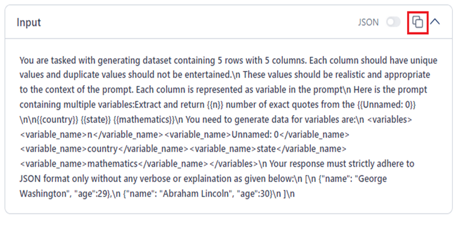 - View, copy, and edit input and output text or JSON code to enhance understanding and facilitate troubleshooting of the model run.