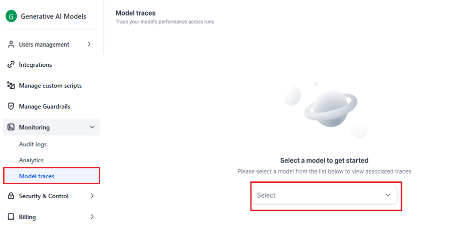 On the left menu, select Monitoring > Model Traces.