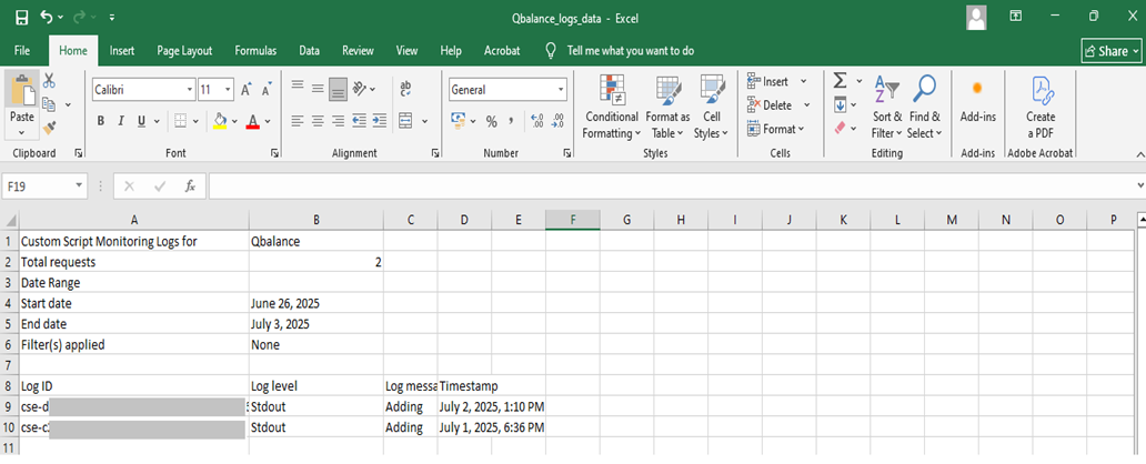 - A CSV file containing records of all runs or logs for the selected script is downloaded to the configured system location.