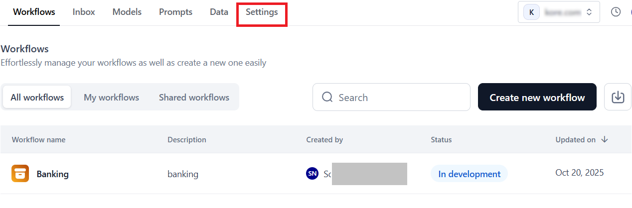 AI for Process' Settings console is a centralized management interface that provides administrators with the workflows and functionalities to configure, monitor, and manage AI for Process’ system configurations to manage the following: