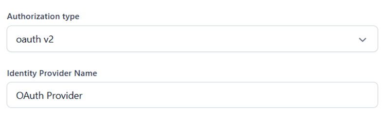| Authorization Type | Select an option from the dropdown. OAuth V2 and OAuth v2 Client Credential are currently supported. | Required | OAuth V2 and OAuth v2 Client Credential |