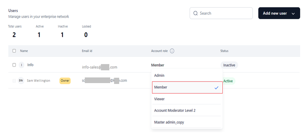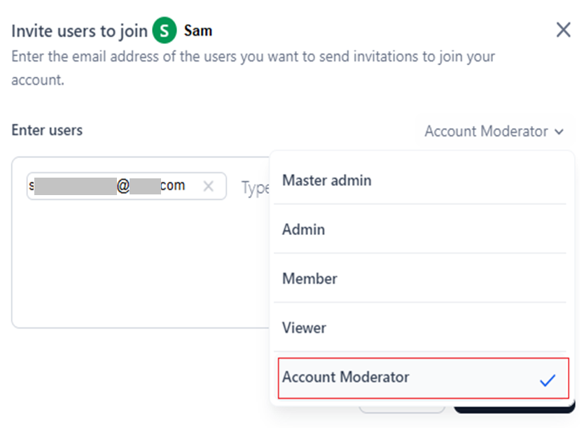 - The Master Admin can assign other account roles to users added to their account.