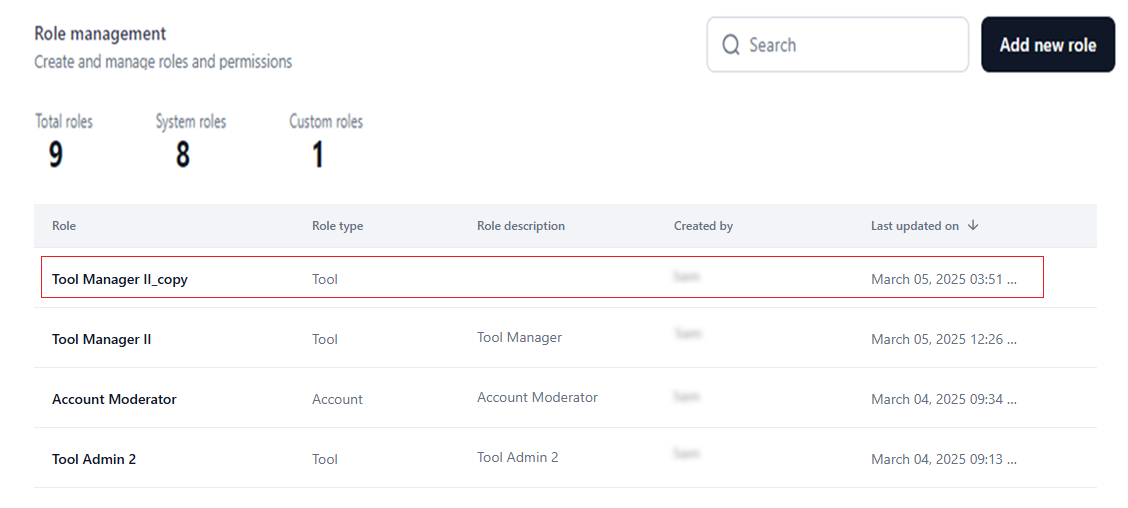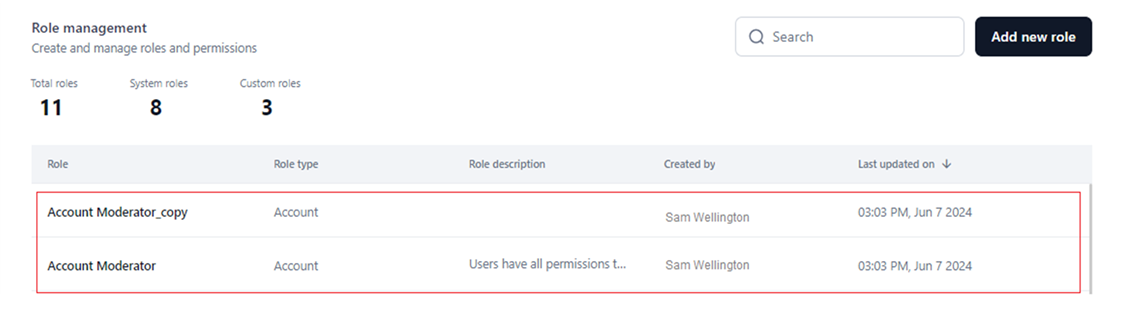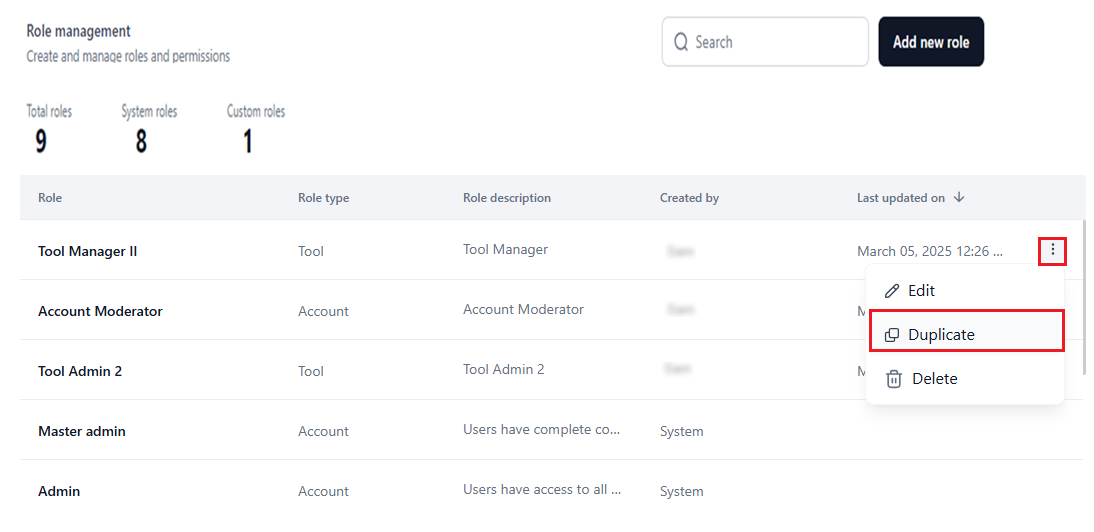 Like a system role, you can duplicate a custom role, which copies the name, role type, and configurations for permissions and access. Follow the steps mentioned here to complete the process for a custom role.