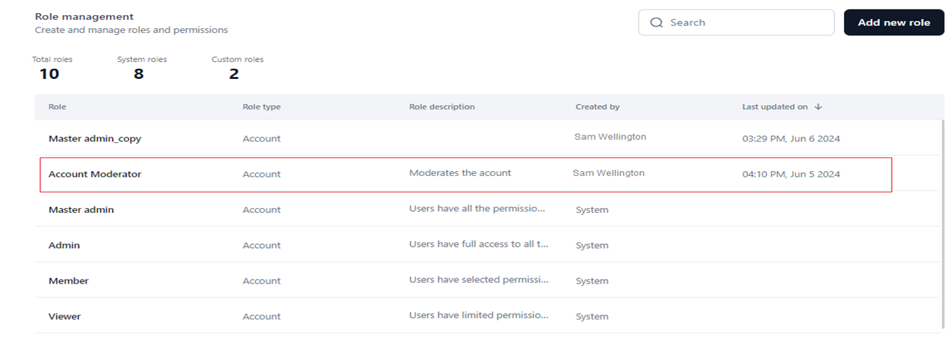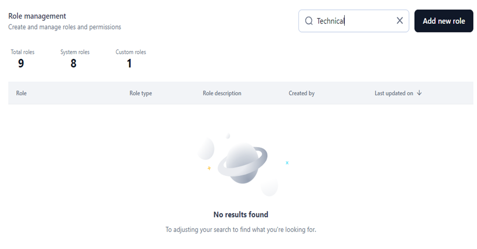 - Navigate to the Role Management dashboard on the Settings console.
