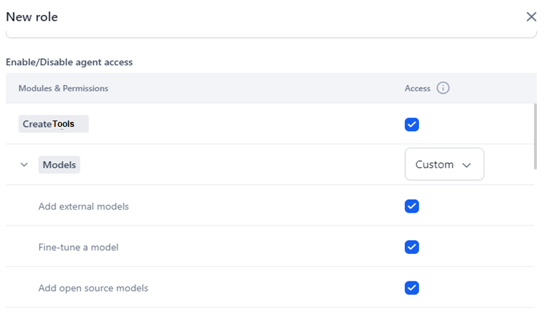 - Custom: The users can select only the required permissions for the module to customize the role.