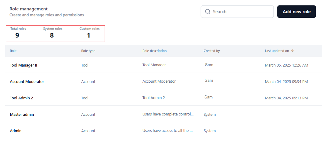 System-defined, system-generated, or default roles provide baseline control over the core features and functionalities and streamline the user management process for administrators.