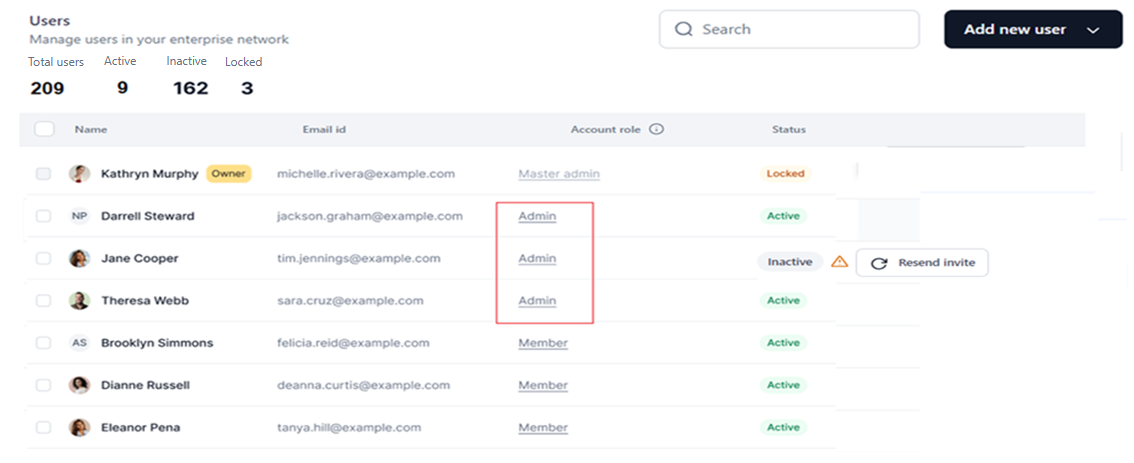 - Inactive: Users invited by the admin but who have yet to join or accept the invitation.