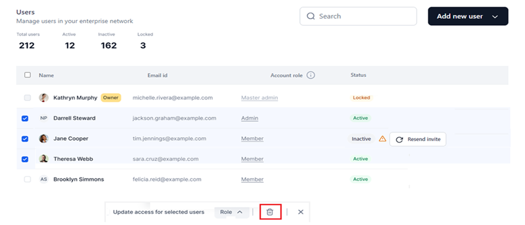 Select the required users, and click the Delete icon at the bottom of the screen to delete multiple users in the list.
