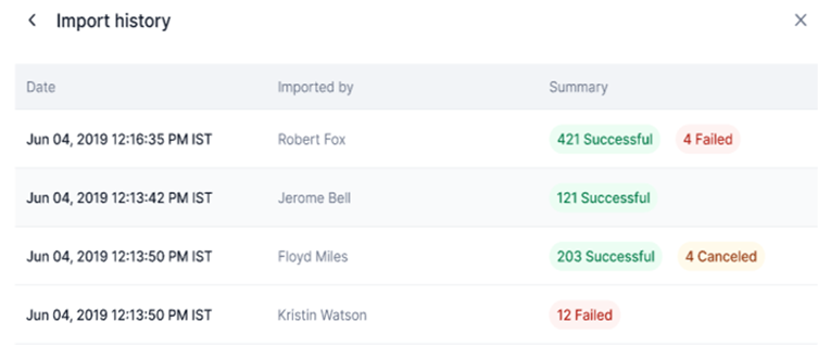 Click Import History in the Import Users window to view and analyze the import history of users in your account.
