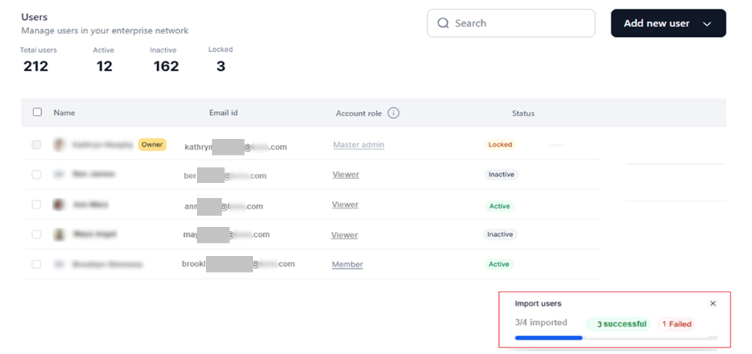 The Users feature simplifies account administration through centralized workflows for inviting, importing, and managing users. The workflows work together to streamline user administration and ensure efficient collaboration, access control, and status monitoring.