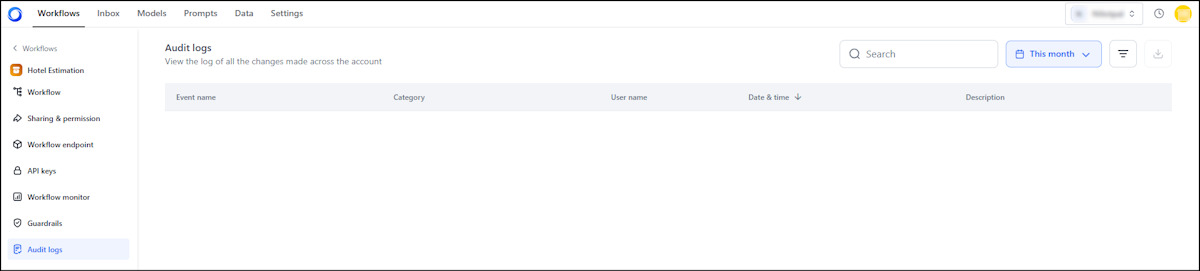Click each row to view more details about the event. For more information, see Workflow-Level Audit Logs. Learn more.