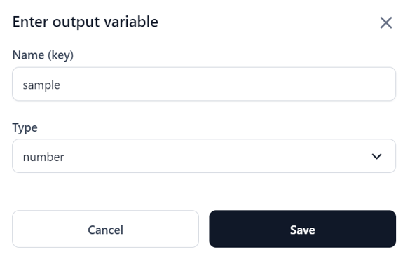 On the Output tab, click the + Add output variable button. The Enter output variable dialog is displayed.
