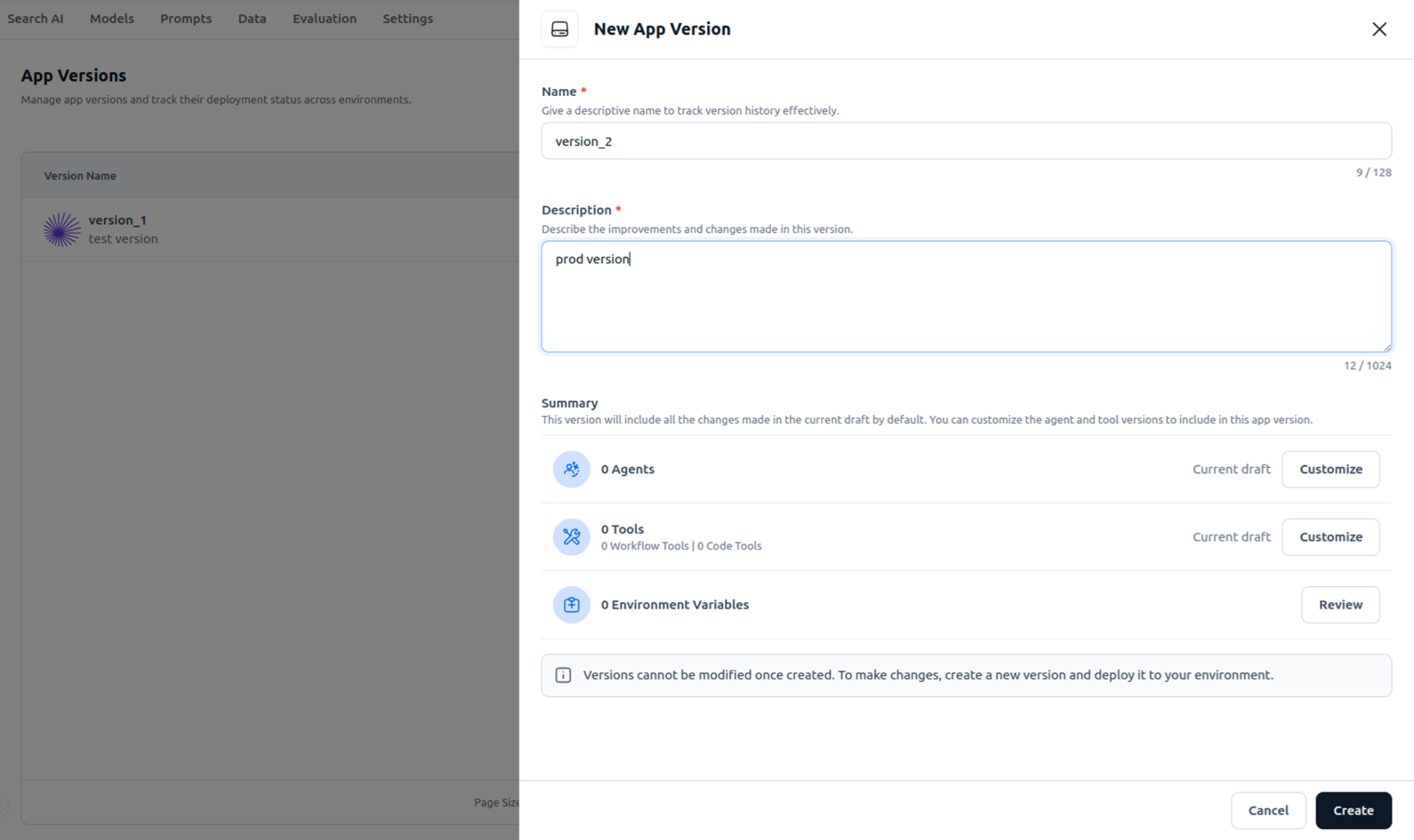 - Go to Deployment → Versions → Create Version.