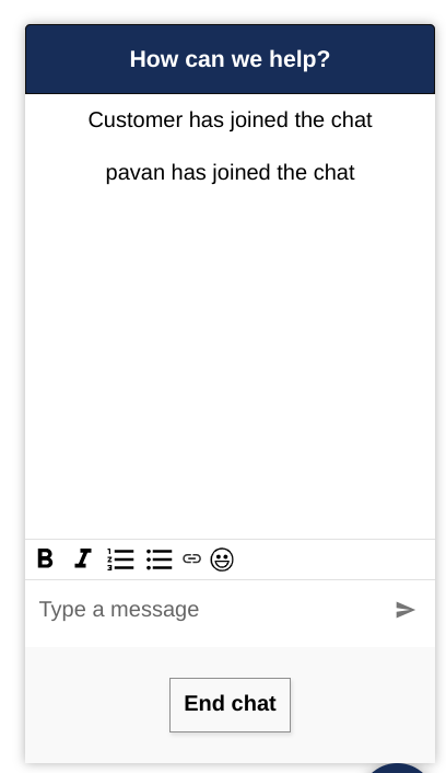 If you initiate a chat, you see the following screen (Agent AI on the right):