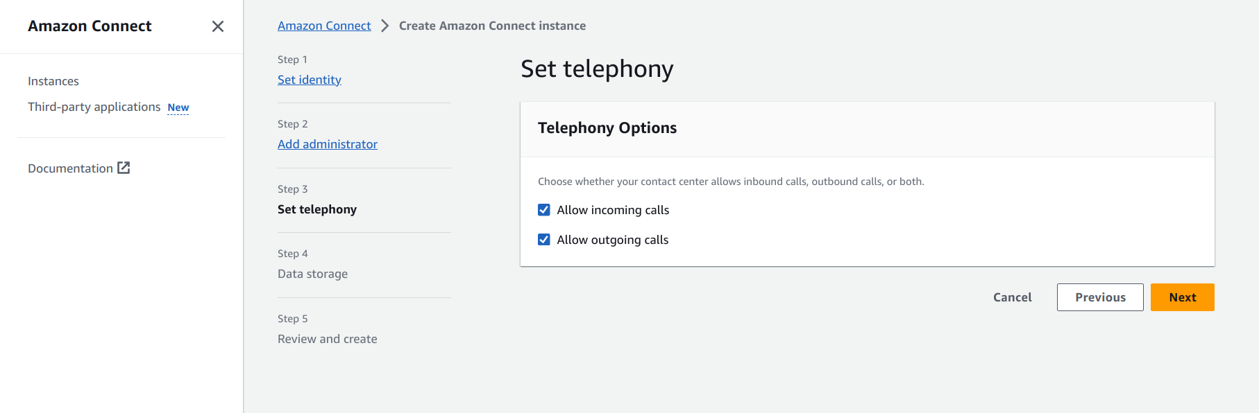 This step creates an Amazon Connect host URL: https://<instance-name>.my.connect.aws.
