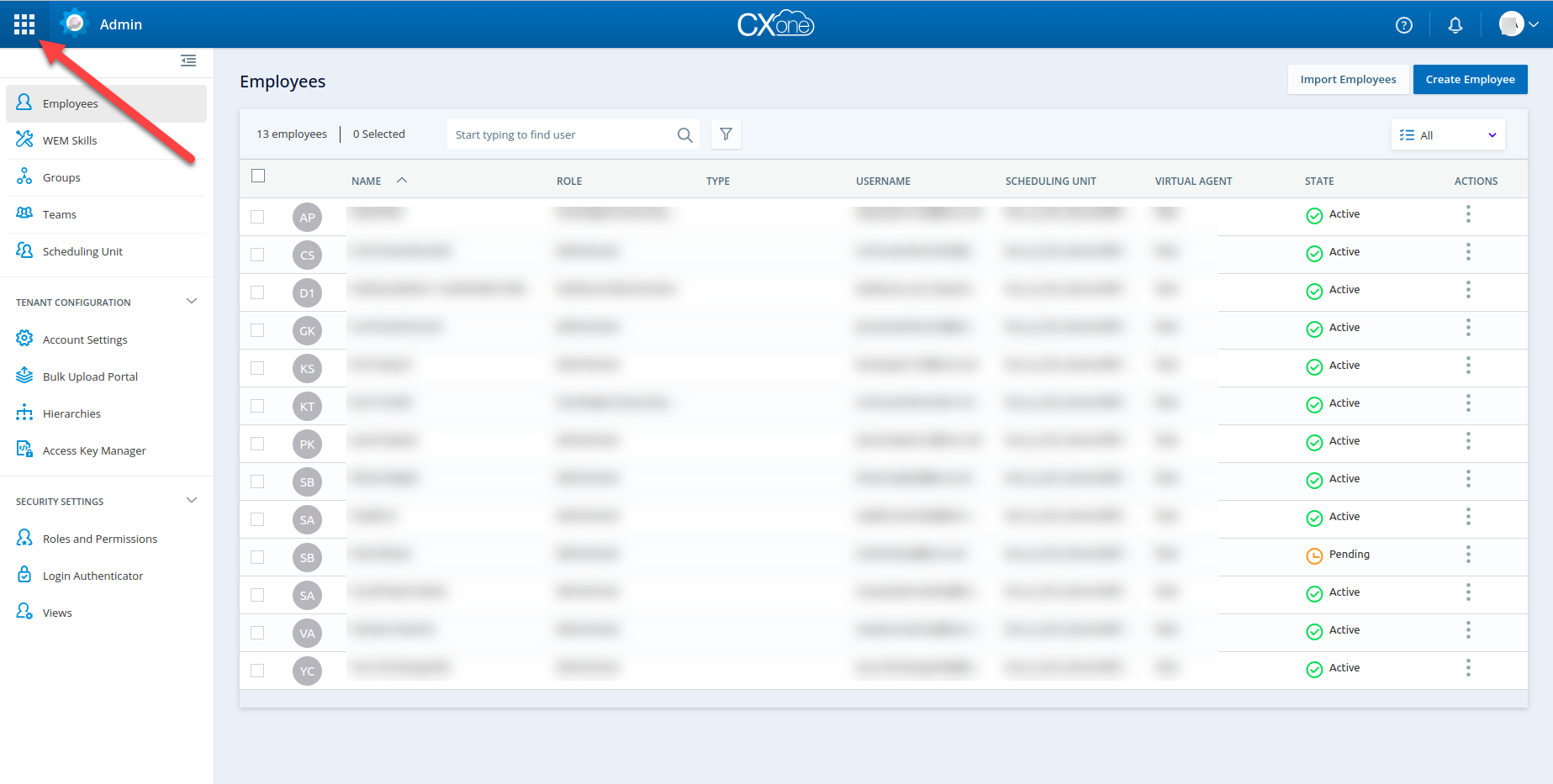 On the NICE Incontact home page, click the application launcher button, and select ACD.