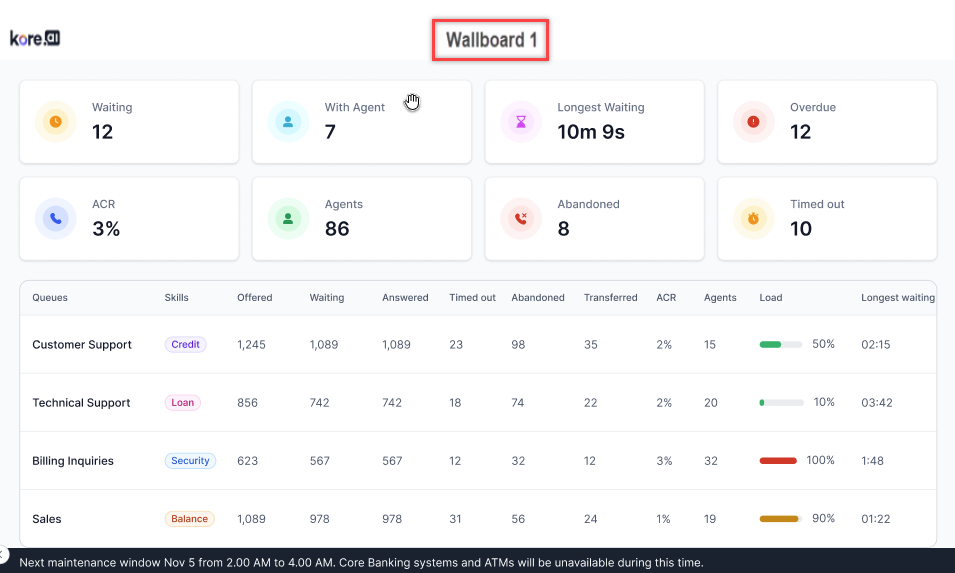 Wallboards enhance the ability to oversee operations efficiently and effectively. Contact Center Administrators and Supervisors can create, edit, and delete the wallboards. Their fixed, high-resolution display ensures that users can access clear and consistent information, suitable for high-definition screens and full-screen viewing.