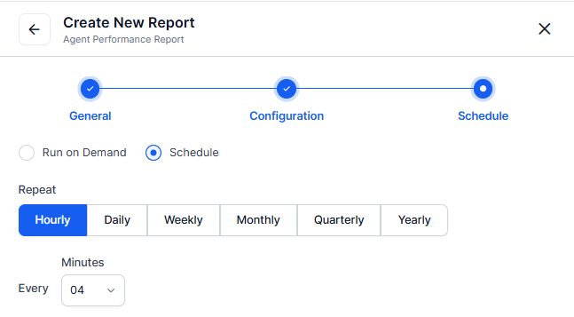 Choose a Frequency or Repeat (Hourly/Daily/Weekly/Monthly/Quarterly/Yearly).