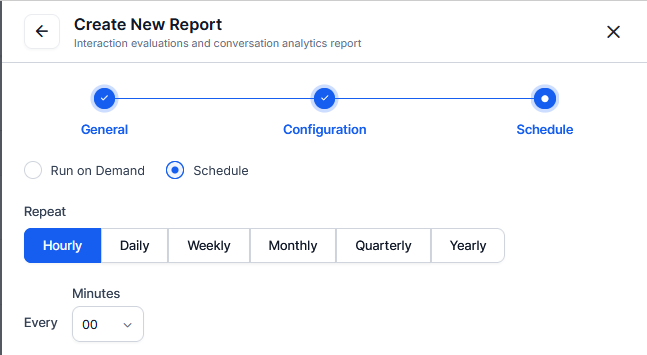From the Create New Report list, select the Interaction Evaluations and Conversation Analytics Report.