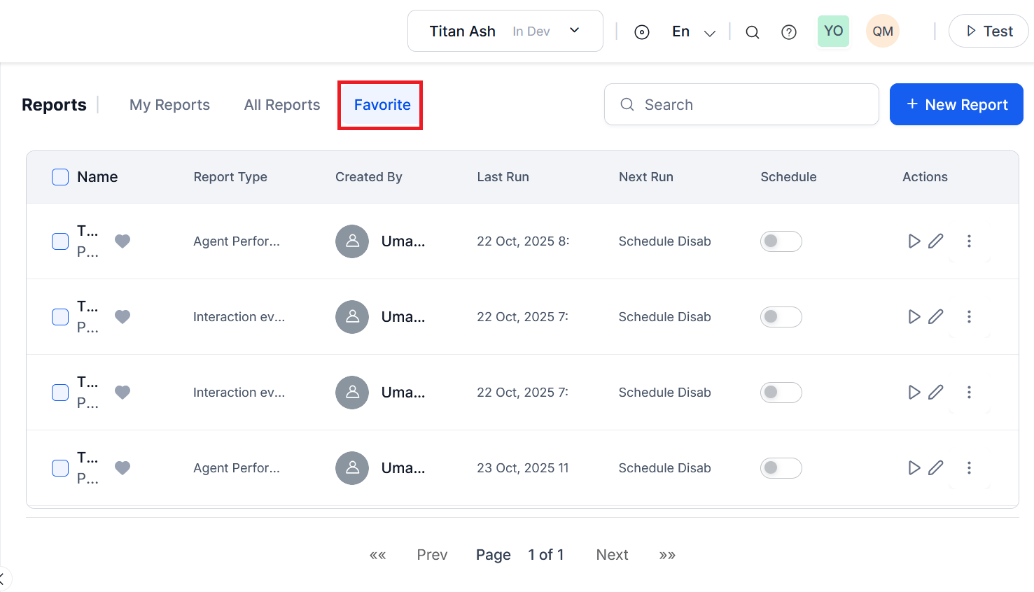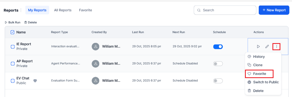 Select Favorite/Unfavorite to create a copy of the report. A successful message appears when marked as favorite/unfavorite.