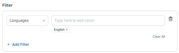 Choose the necessary Filter, such as Channel, Queue, Language, Agents, and set their corresponding values.