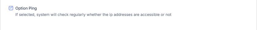 Option Ping: If selected, the system checks whether the IP addresses are accessible. This option is selected by default.