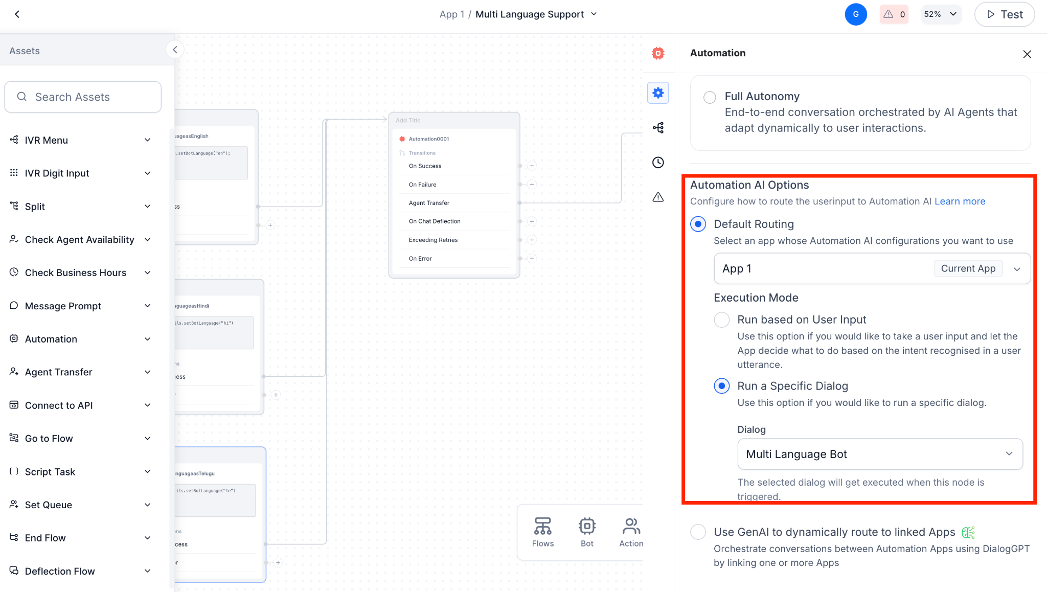 Once the Flow and Dialogs are configured, publish the flows and perform thorough testing. Dial the number and ensure that the language selection works correctly and that the AI Agent responds in the chosen language.