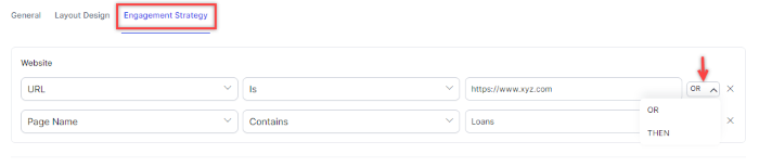 Field Data Type Supported Operators Page Visit CountNumber Equals, Greater Than or Equal To Time SpentNumber Equals UserString Is (known / anonymous) CountryString Is StateString Is CityString Is DeviceString Is (Mobile / Laptop / Tablet) URLString Contains, Ends With Page NameString Is, Contains Hover OnString ID, Class, and Query Selector You can apply the NOT operator at any condition level to invert the condition.
