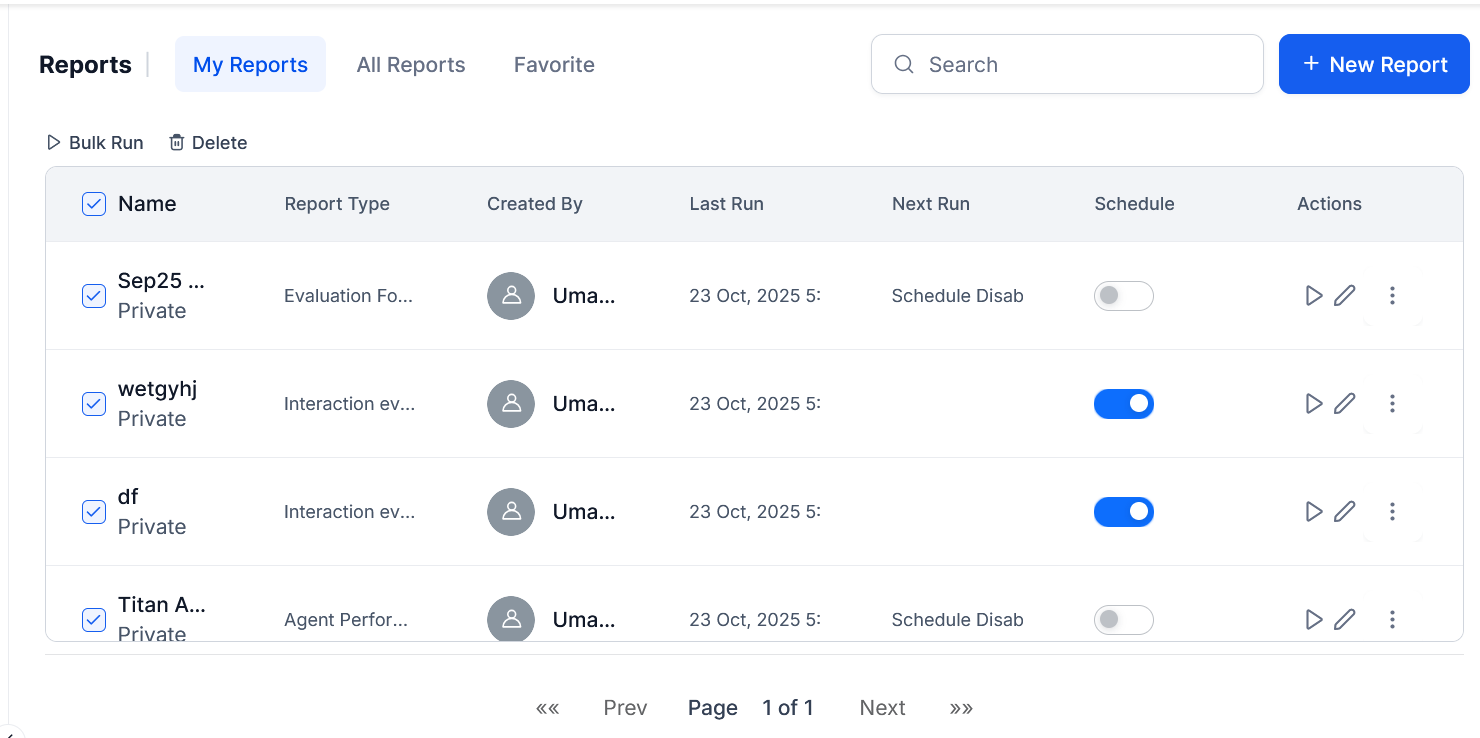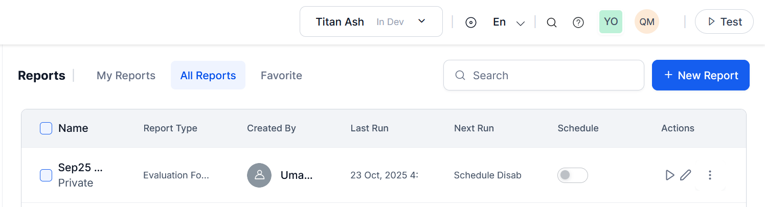 • Last Run: Shows the most recently executed or generated timestamp of the report.