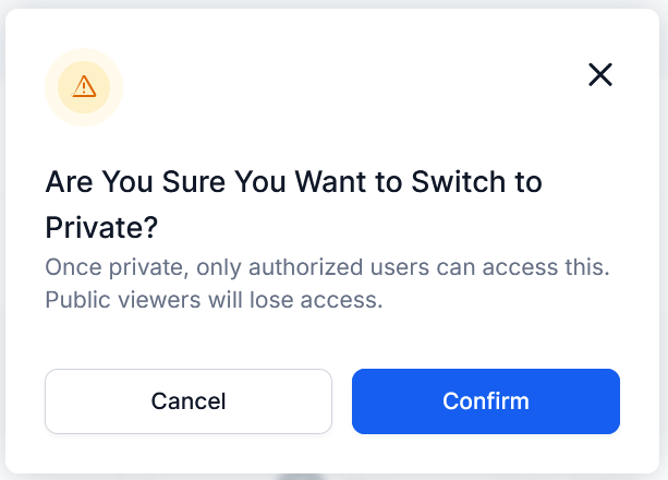 • Switch to Public/Private: Enables you to control the report’s accessibility to specific groups or individuals across the organization by toggling its status between public and private.