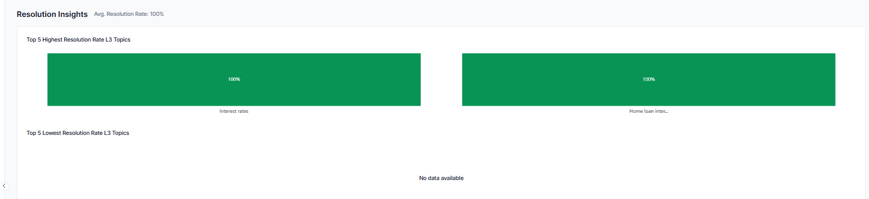 Top 5 Highest Resolution L3 Topics: Displays the agent’s top 5 L3 topics with the highest resolution rates, in descending order.