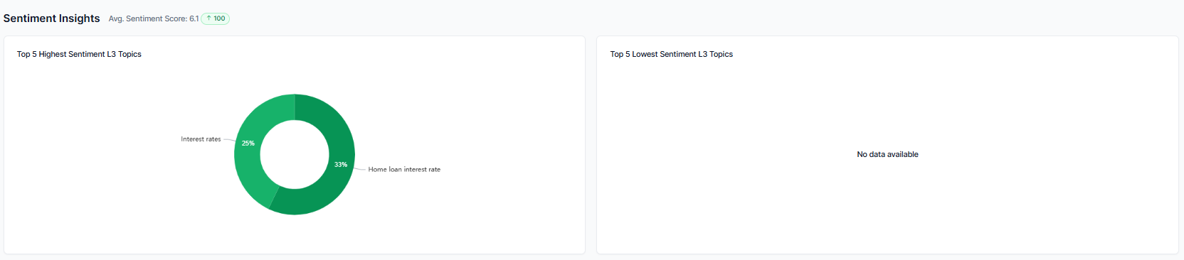 Top 5 Highest Sentiment L3 Topics: Shows the agent’s top five L3 topics with the highest sentiment in descending order.